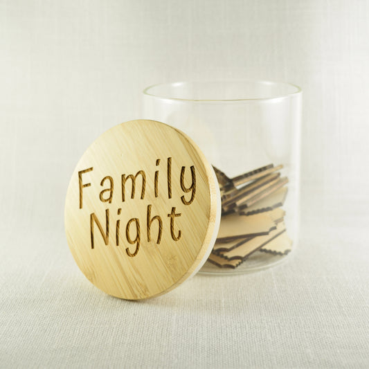 Couples’ Activity Jar – Personalized Wood Lid & Iridescent Date Night Tokens