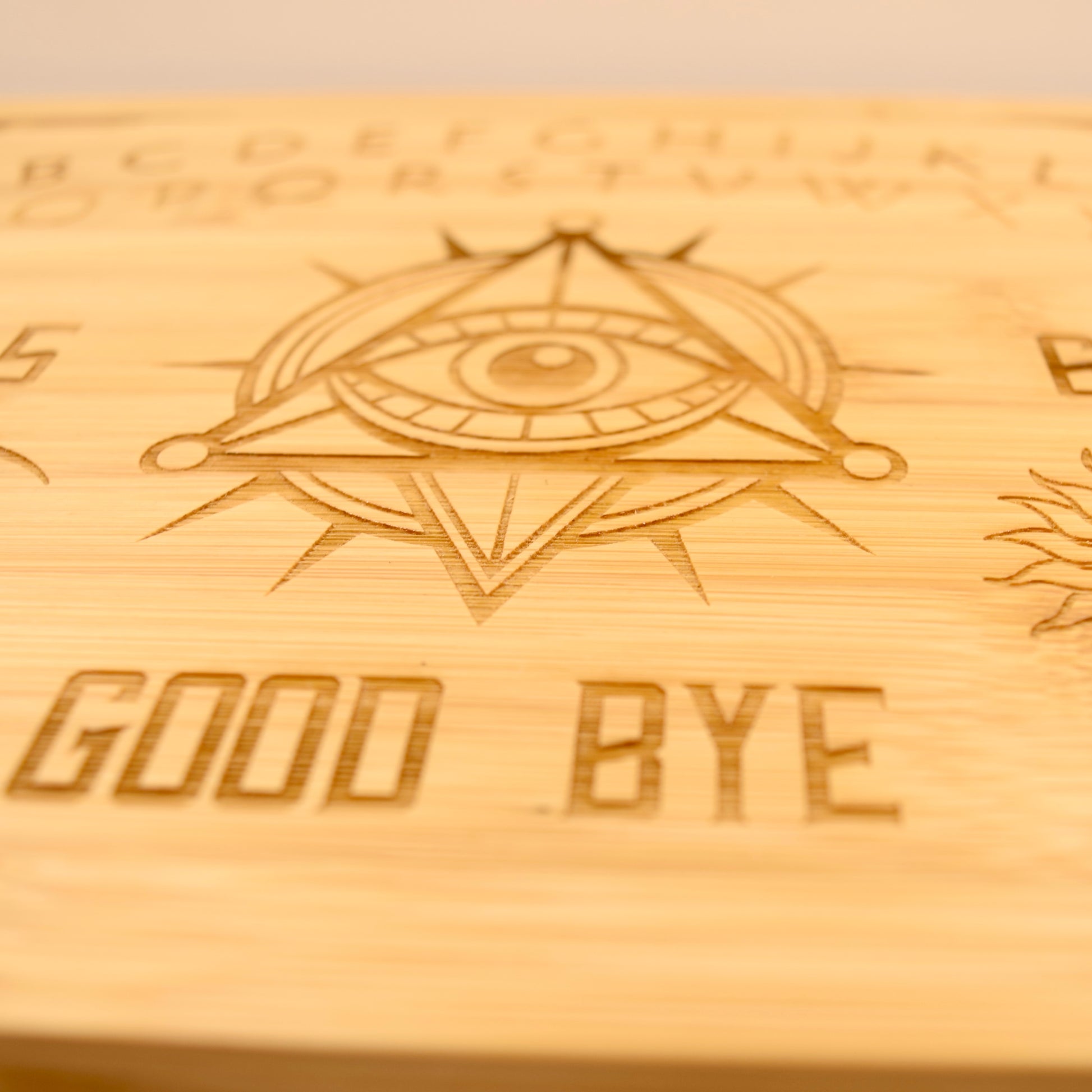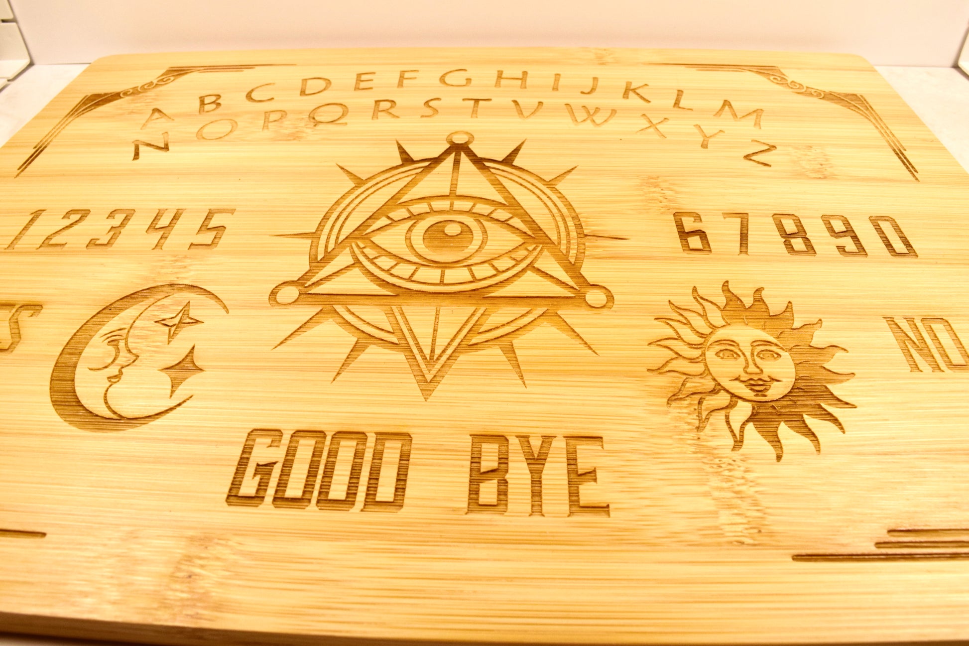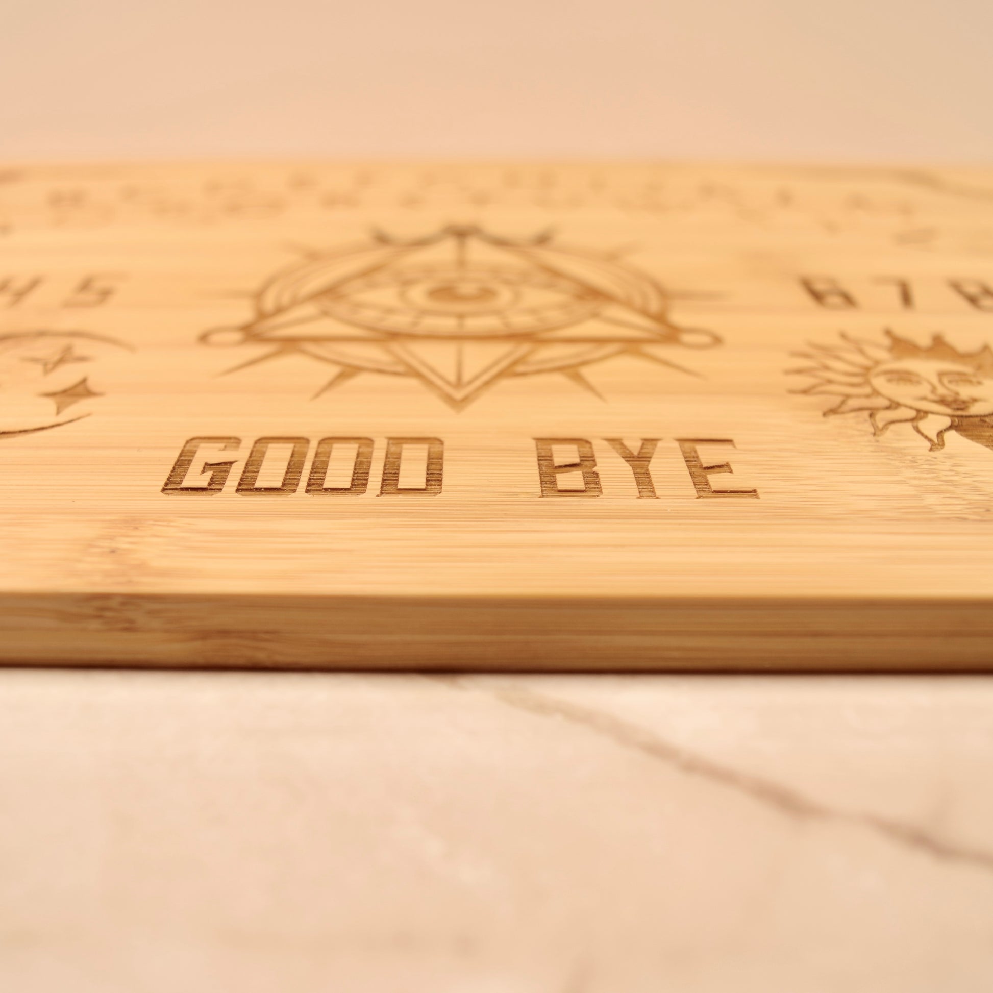 Bamboo Ouija Board Cutting Board with Matching Planchette – 12x9" Engraved Halloween Charcuterie Board