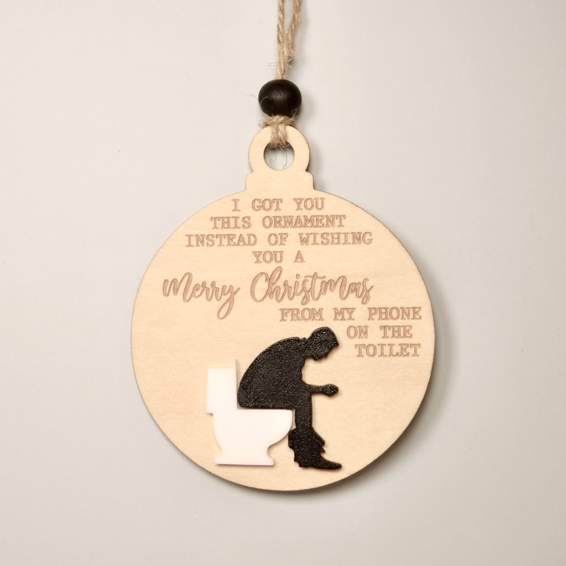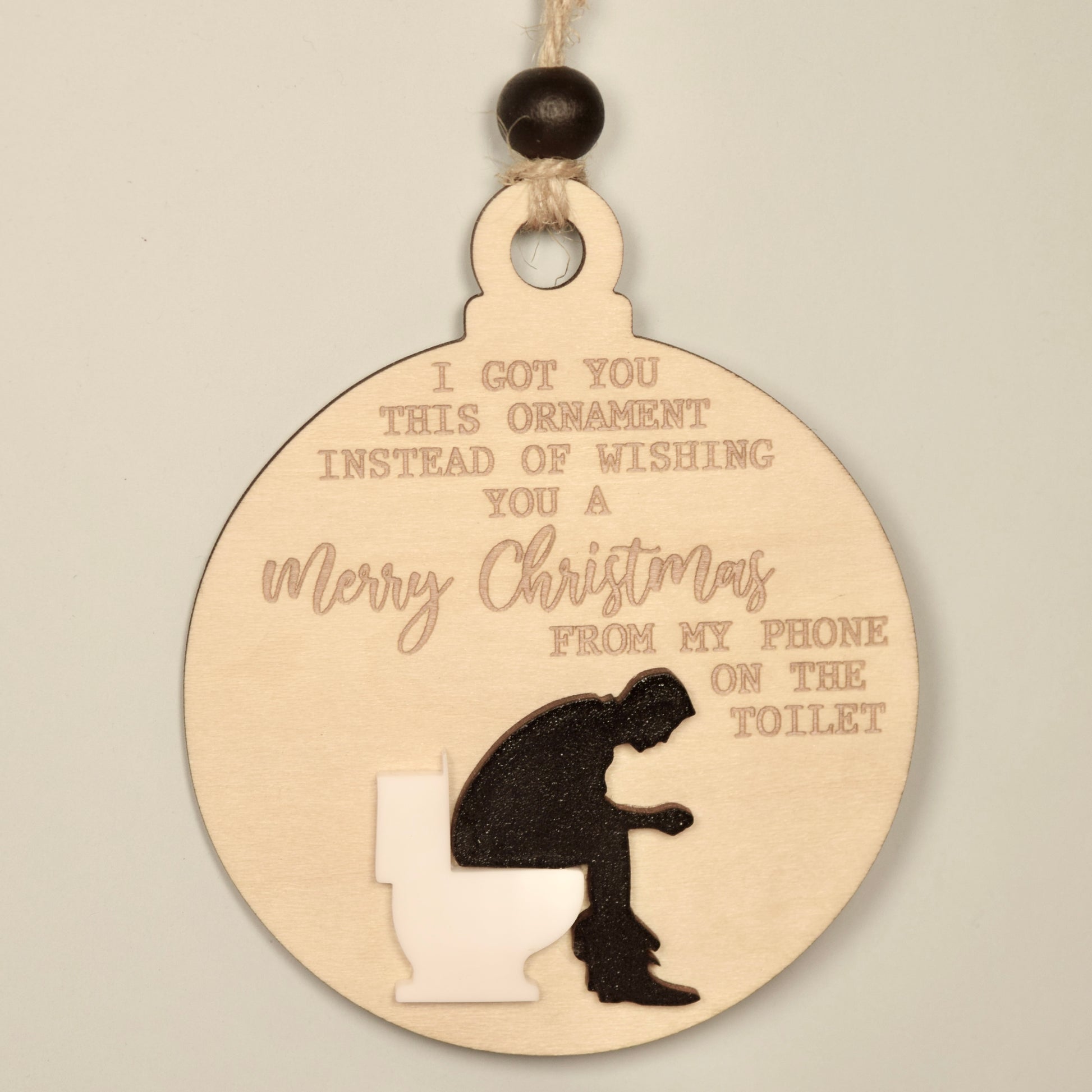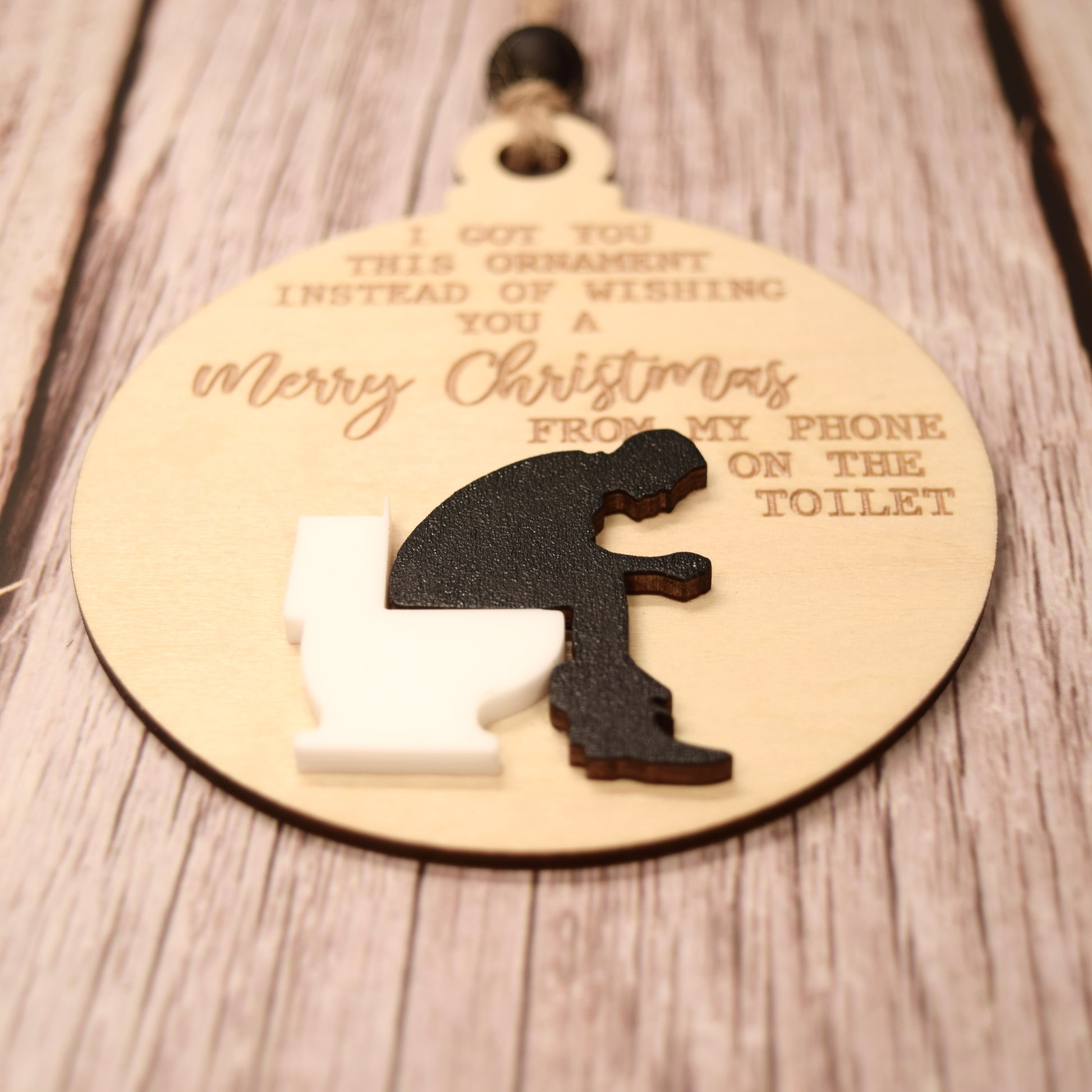 Cheeky Holiday Ornament – “Merry Christmas from the Toilet” Engraved Wood & Acrylic