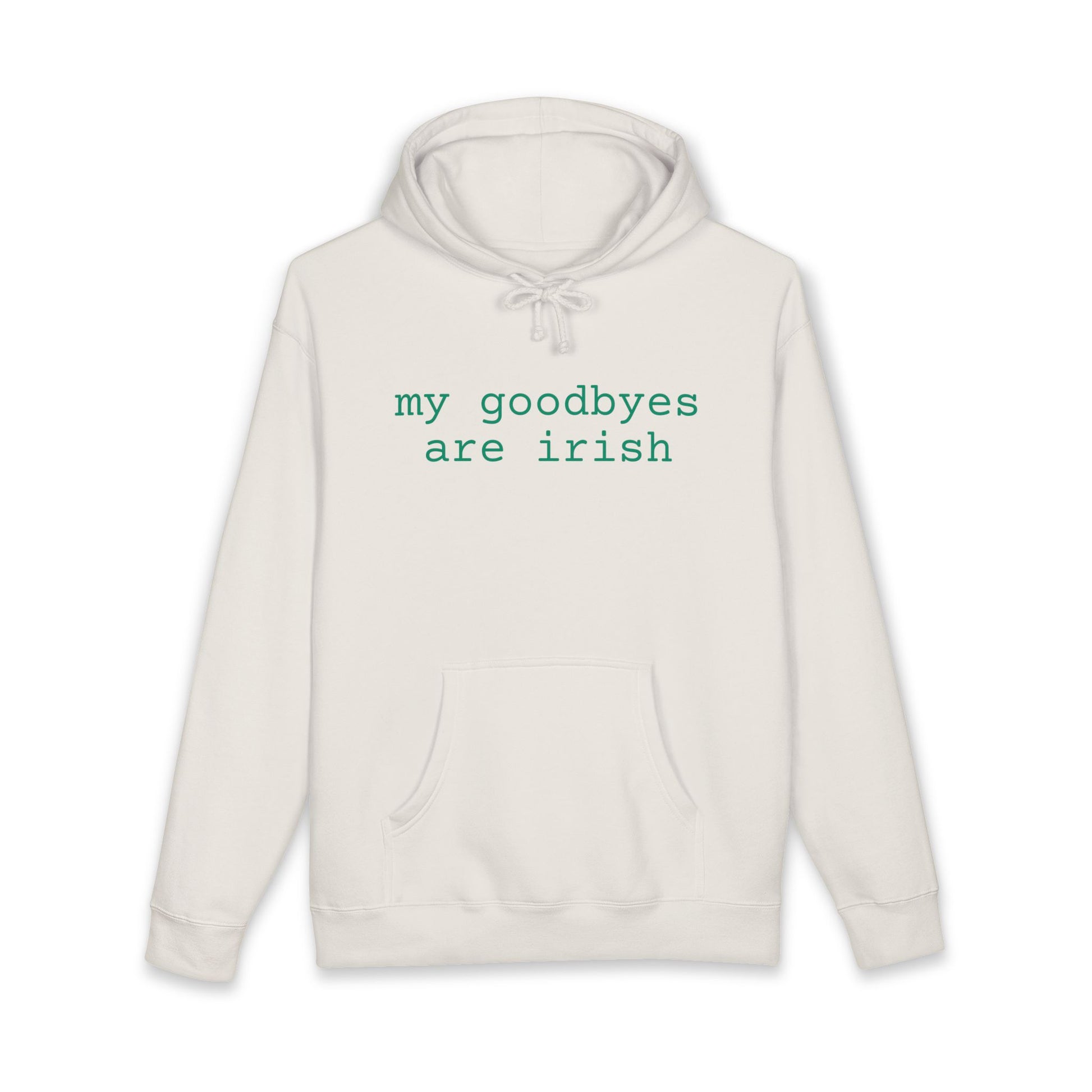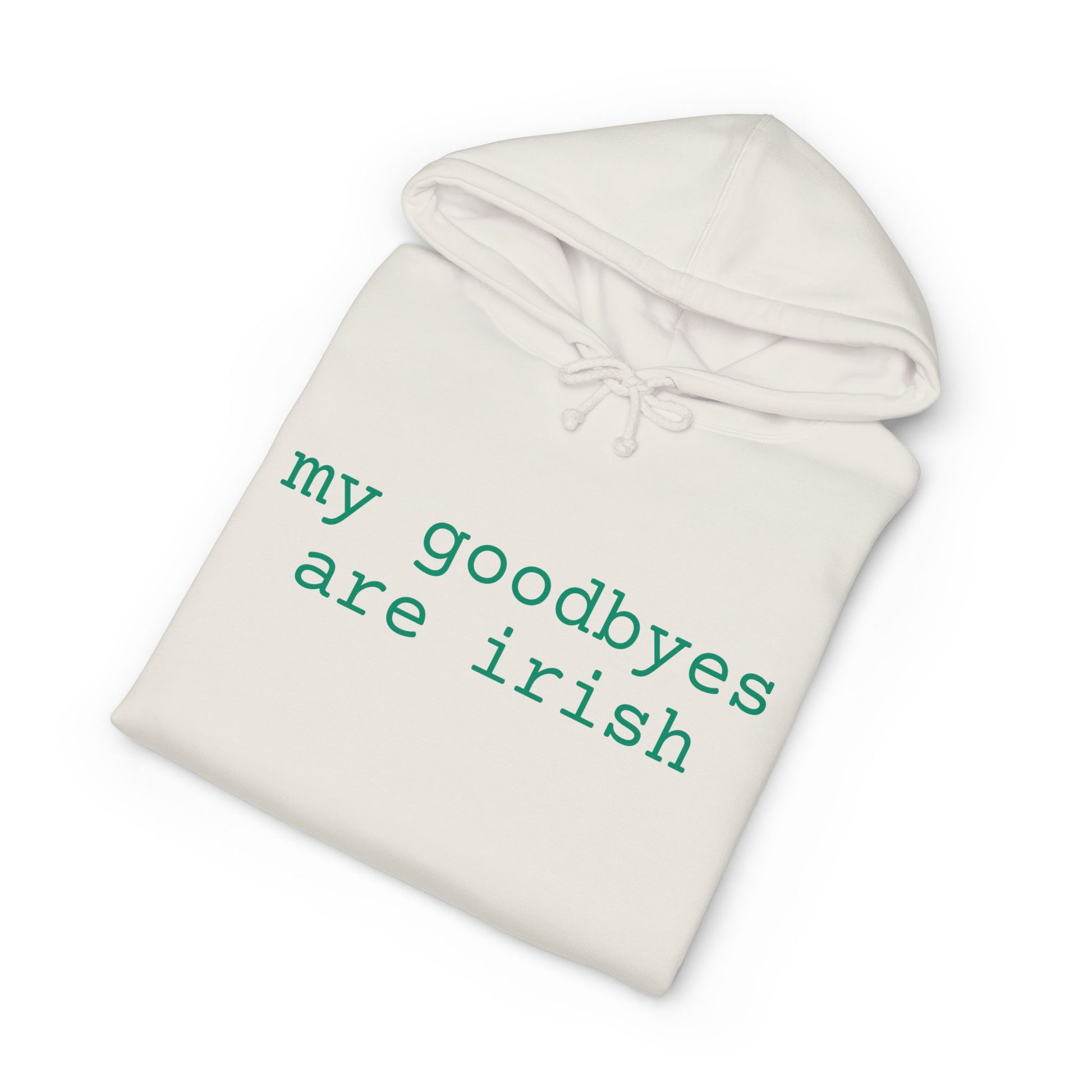 Irish Goodbyes. This St. Patrick’s Day hoodie blends Irish vibes with everyday comfort. Made with heavyweight fabric and a fleece-lined hood, this classic-fit pullover sweatshirt is built for cozy layering. With durable double-needle stitching and a relaxed unisex feel, it’s the perfect lucky charm for St. Paddy’s Day parties.