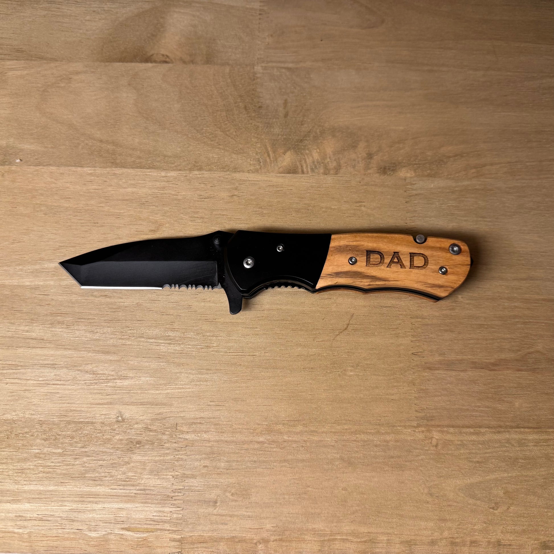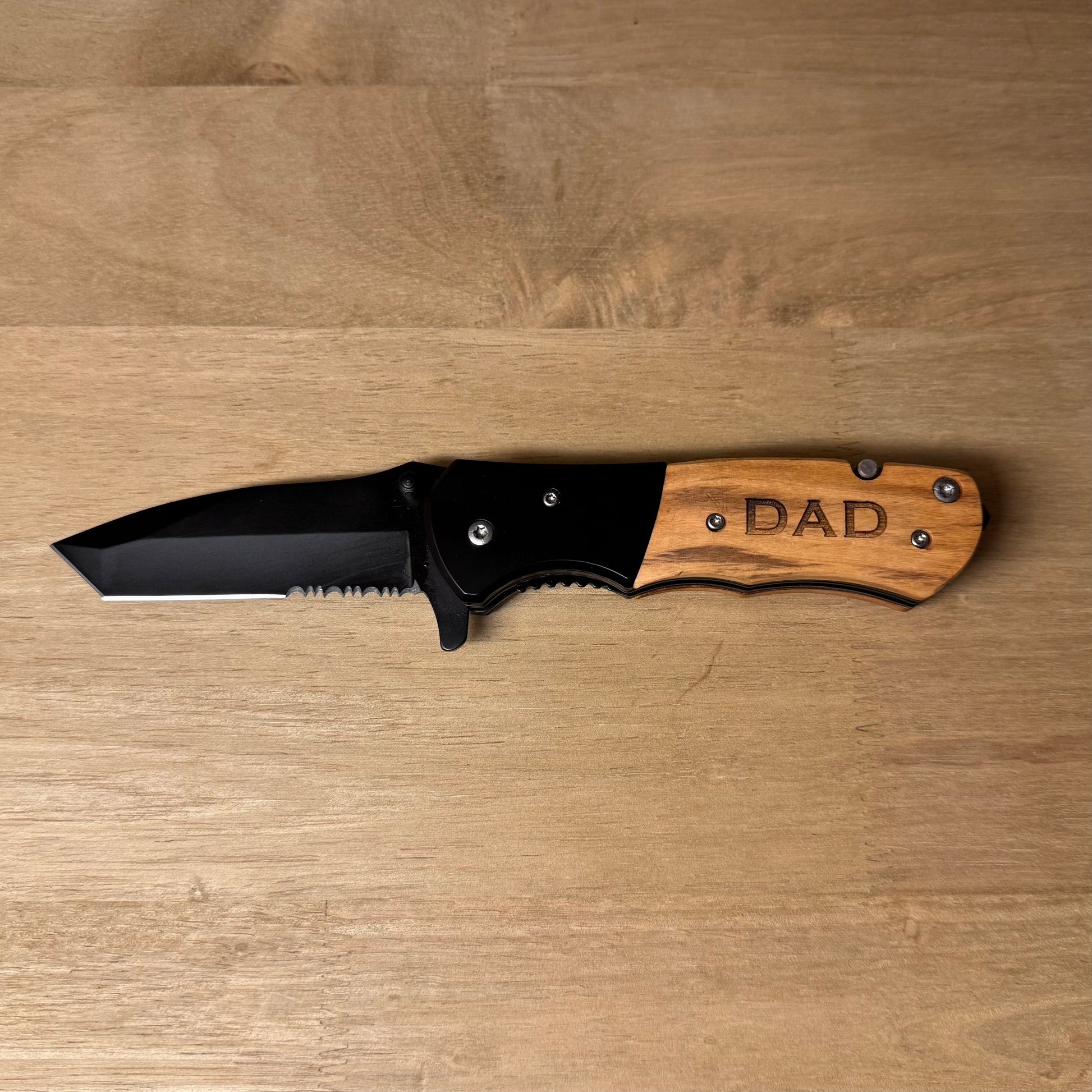 Add a personal touch by engraving a name, initials, or title on the handle — perfect for Father’s Day, birthdays, anniversaries, or as a thank-you to the guy who always has your back. Whether it’s kept in a toolbox, tackle box, or glove compartment, this knife is built to perform and made to impress.